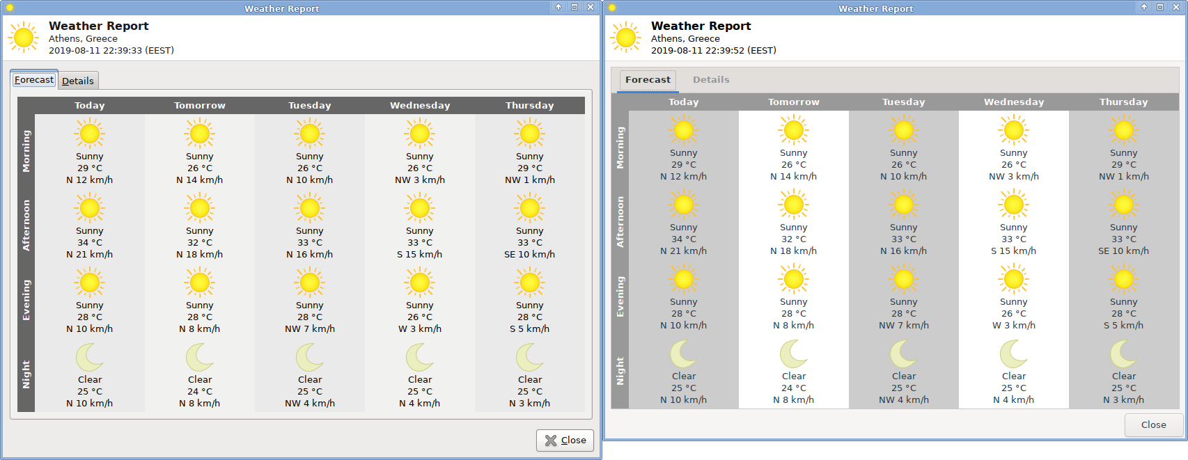 Weather report example (0.8.11 vs 0.10.0, the latter being hard to read)