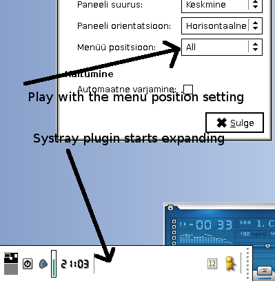 Screenshot illustrating the systray bug