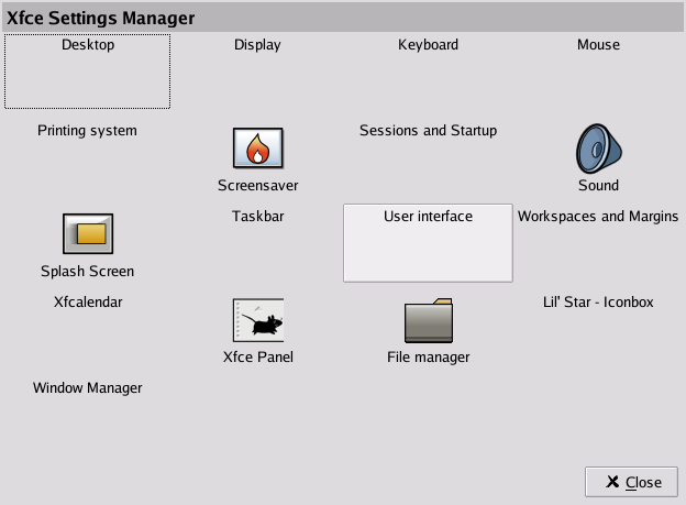 Settings manager on RedHat 9 (XFCE 4.2.2)