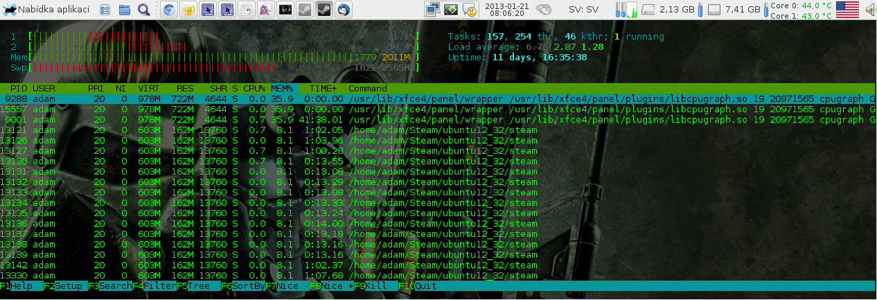 [Xfce-bugs] review granted: [Bug 9691] cpugraph uses 2GB memory after 15 days of usage : [Attachment 4874] Screenshot of htop