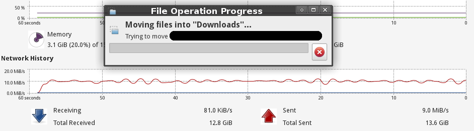 A dialog is actually spawned, but no progress bar is shown. The system monitor