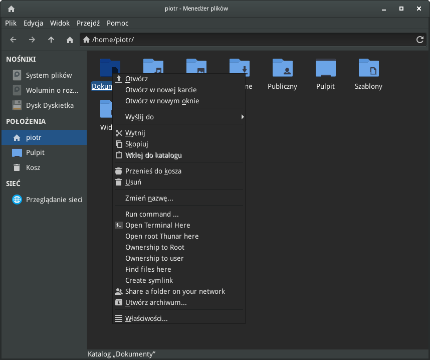 In MX Linux part of context menu is not translated into polish