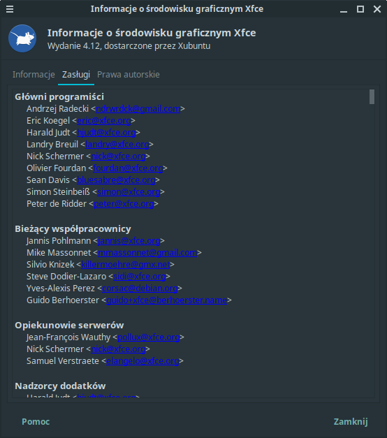 xfce4-about Credits tab does not look good. Blue color on the e-mail addresses