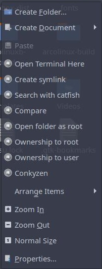 this is the right mouse click panel when on thunar