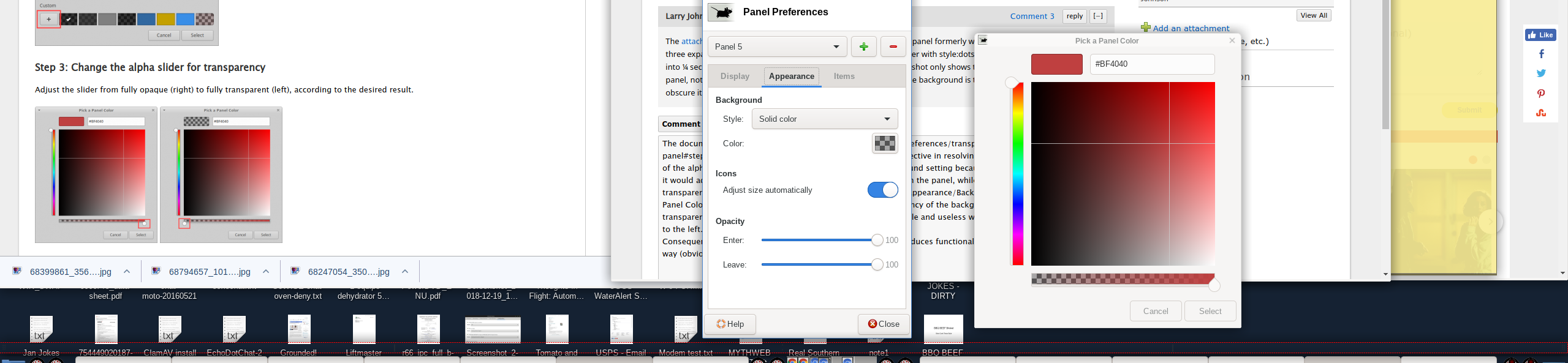 Shows hidden items when alpha set left on panel preference