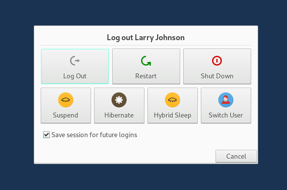Panel/Applications/Log Out/Log out USERNAME popup window