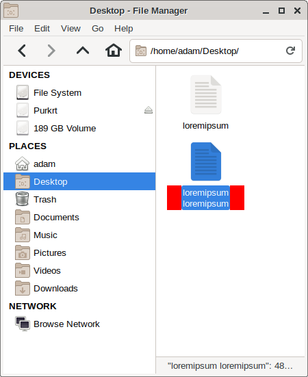 1) Have two files named "loremipsum" and "loremipsum loremipsum" in icon view.