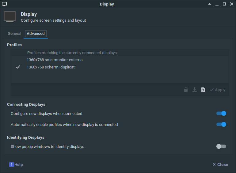 "1360x768 solo monitor esterno" >> that means: "1360x768 only the external