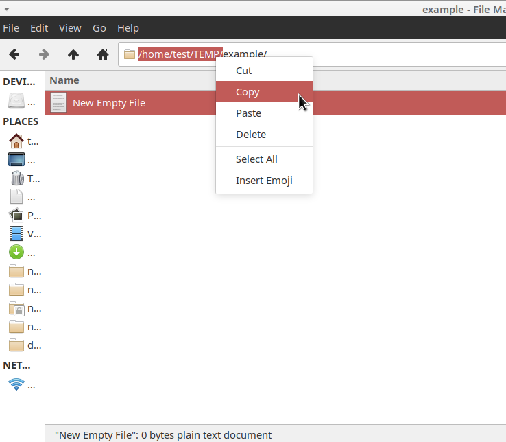 But result actually: "/home/test/TEMP/example/New Empty File"